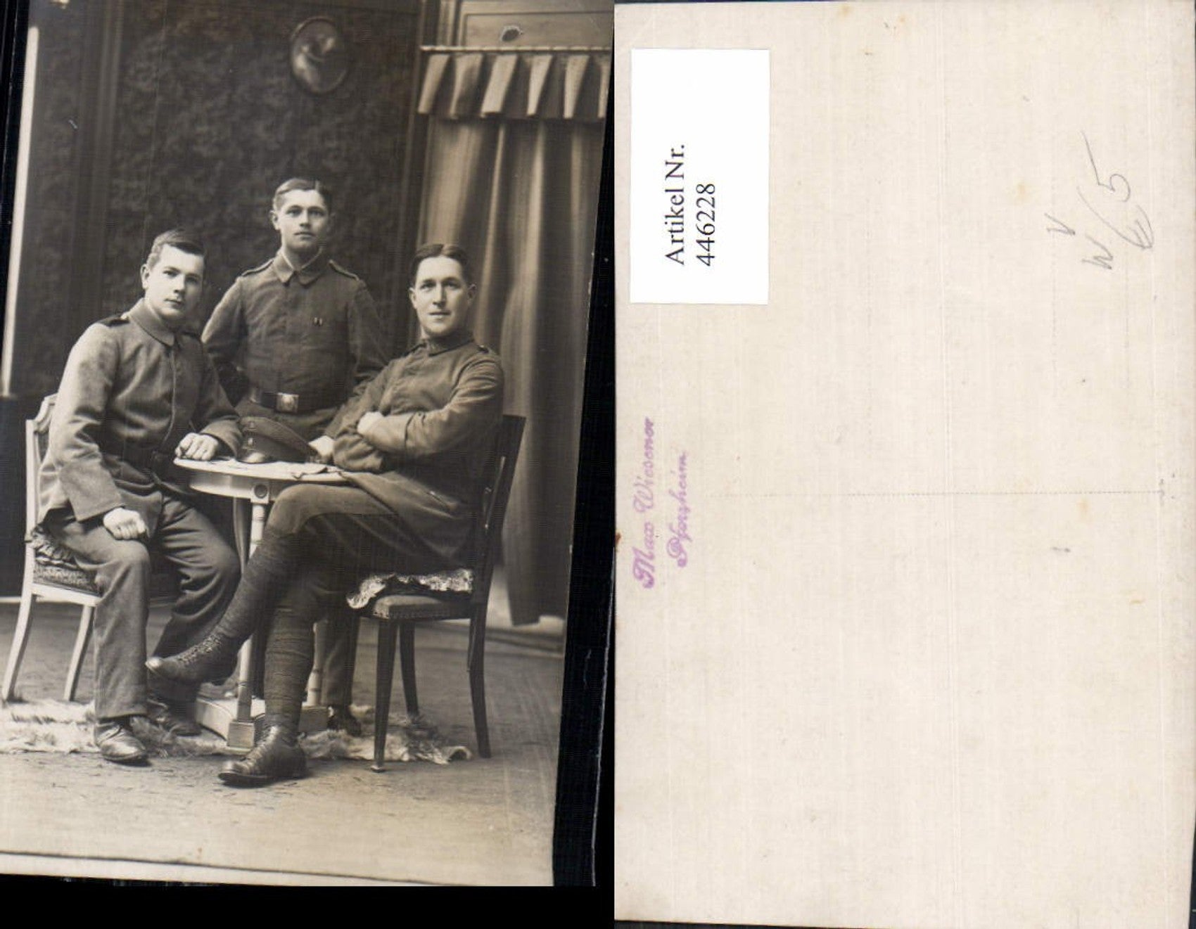 446228,Foto Ak WW1 Soldaten Uniform b. Tisch sitzend pub Max Wiesener Pforzheim