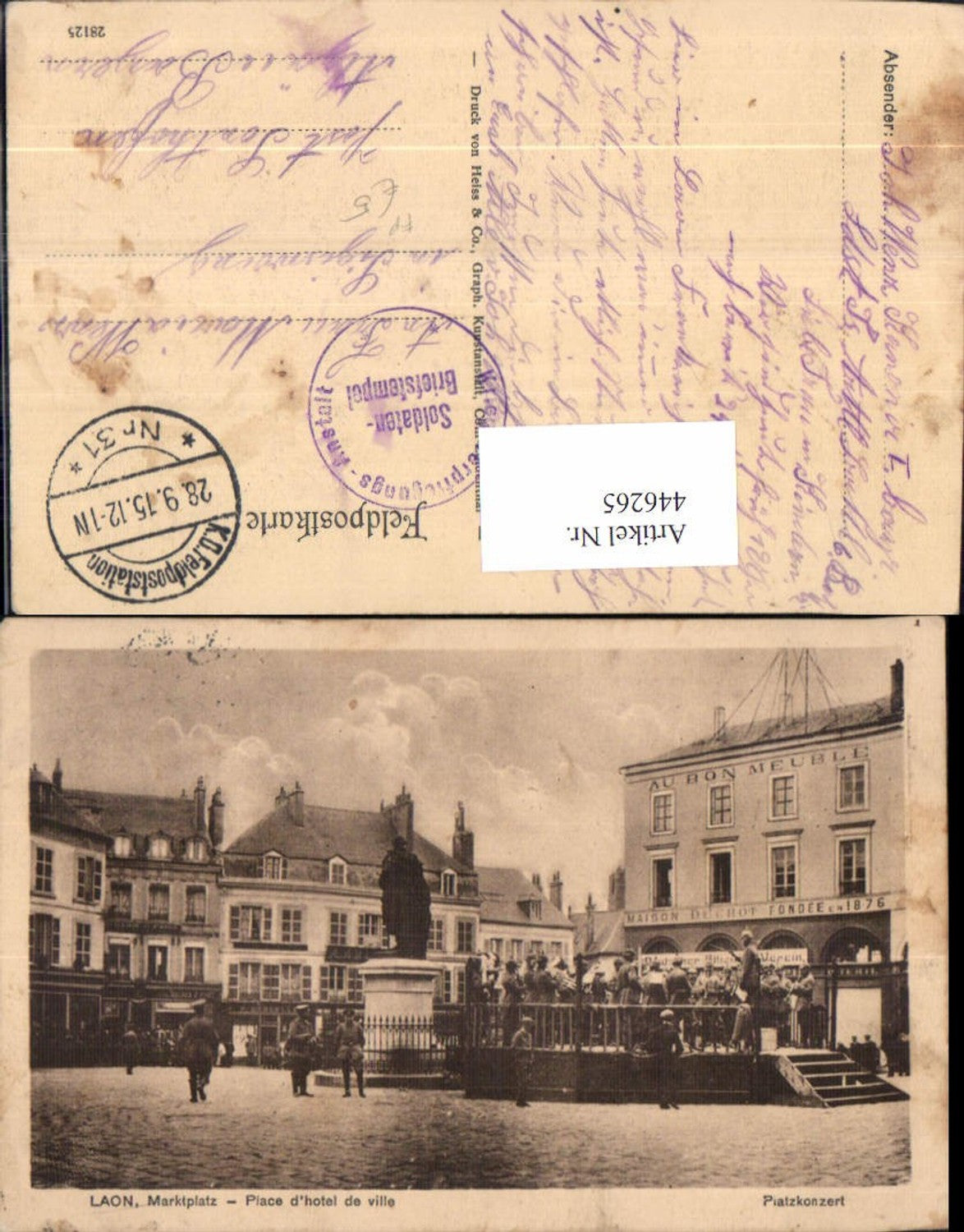 446265,WW1 Laon Marktplatz Platzkonzert Soldaten FP Kriegsverpflegungsanstalt