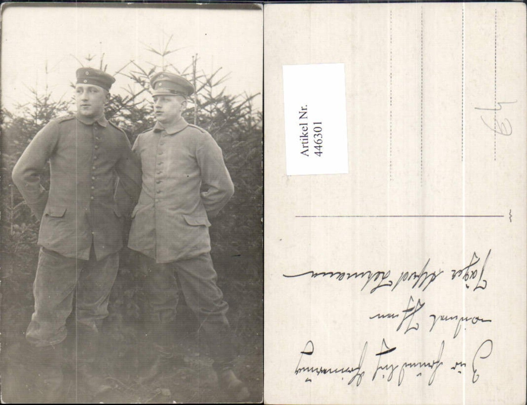 446301,Foto Ak WW1 Soldaten Uniform vor Bäume Fichten