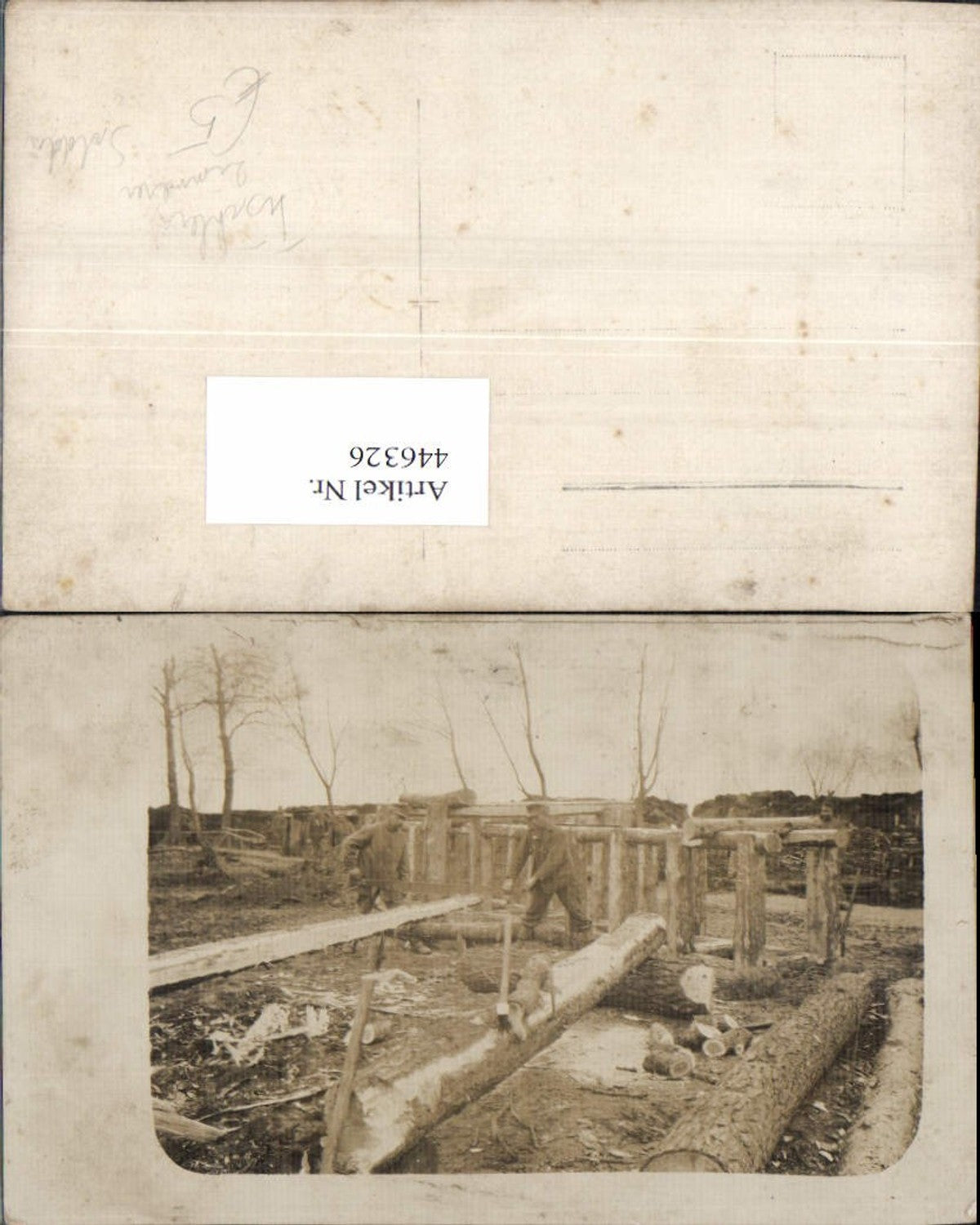 446326,Foto Ak WW1 Soldaten als Zimmerer Tischler Soldatenleben