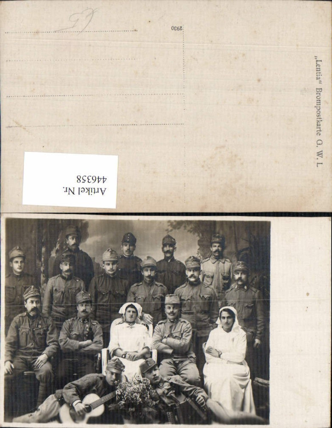 446358,Foto Ak WW1 Rotes Kreuz Schwestern Soldaten Lazarett Gruppenbild Gitarre