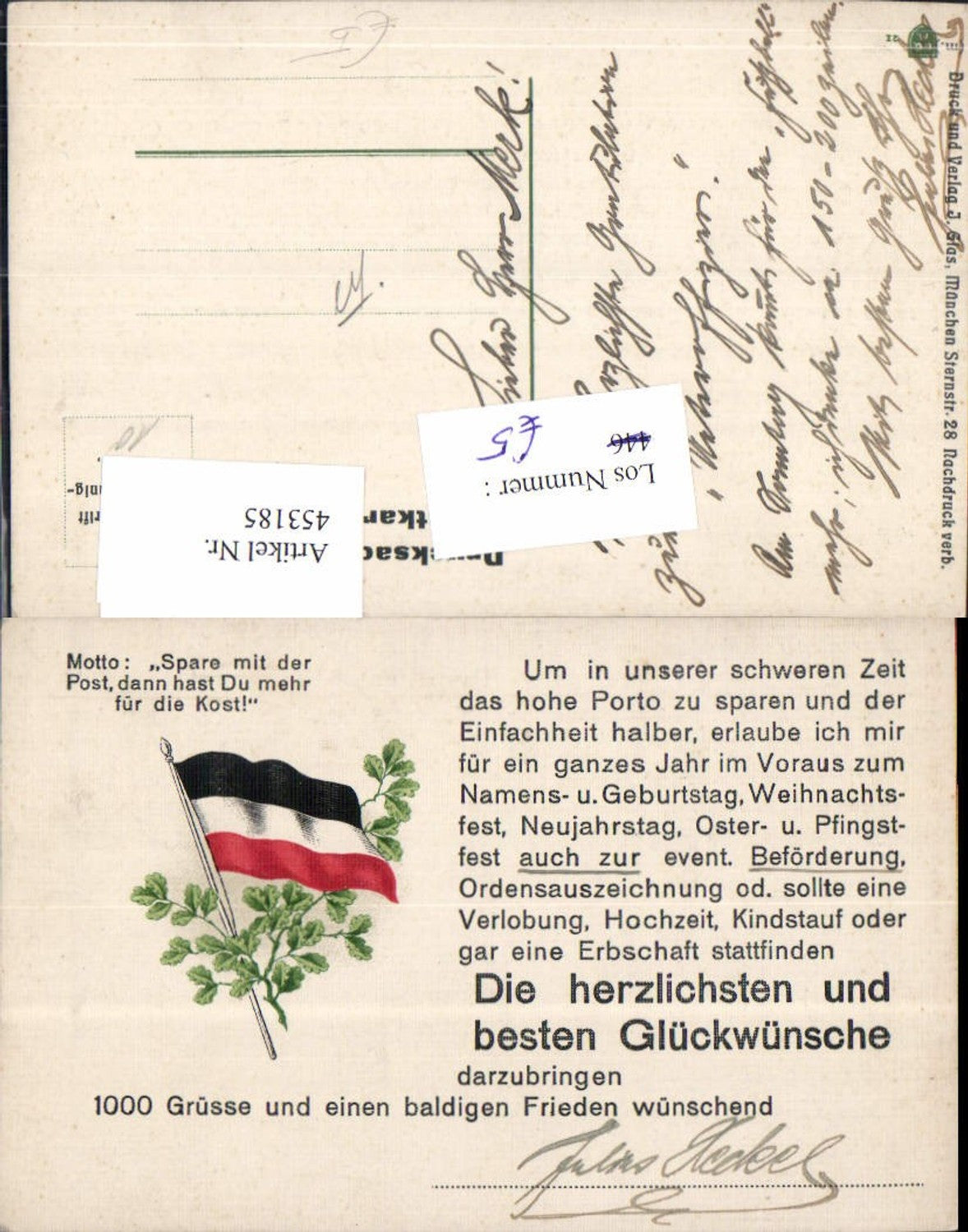 453185,WW1 Fahne Spruch Spare Post hast mehr für Kost Patriotik Propaganda