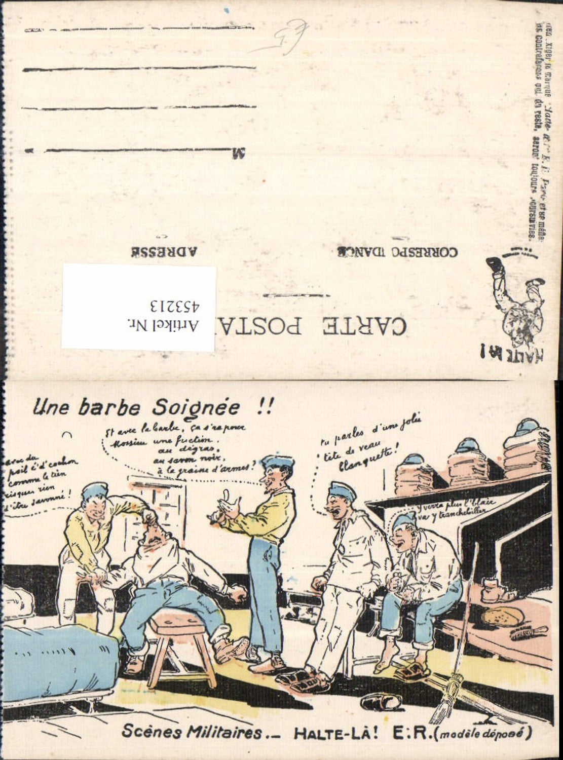453213,Künstler Ak WW1 Karikatur Halte La Humor Une barbe Soignee