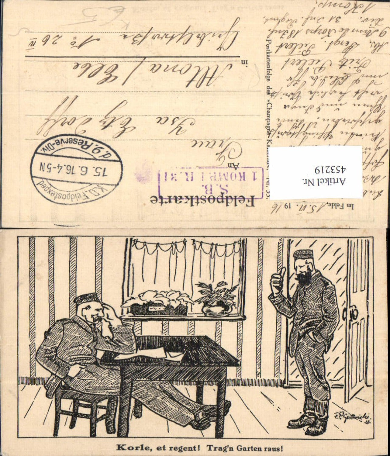 453219,Künstler Ak WW1 Karikatur Soldaten Tragn Garten raus