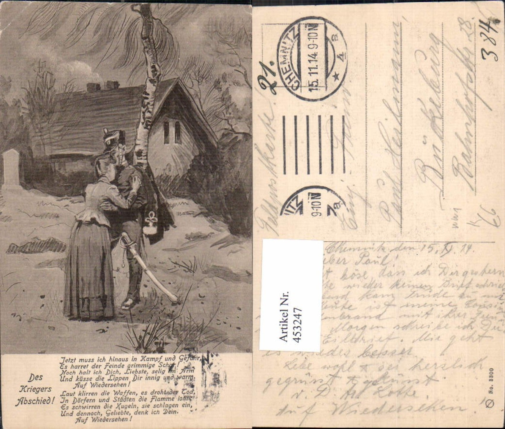 453247,Künstler Ak WW1 Des Kriegers Abschied Text Soldat Patriotik Propaganda