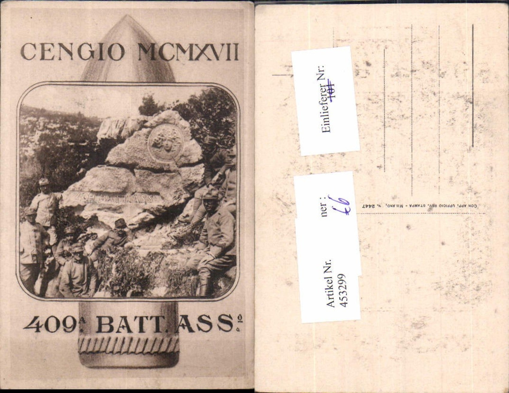453299,WW1 Soldaten v. Steindenkmal Felsen 409 Batt. Ass. Patriotik Propaganda