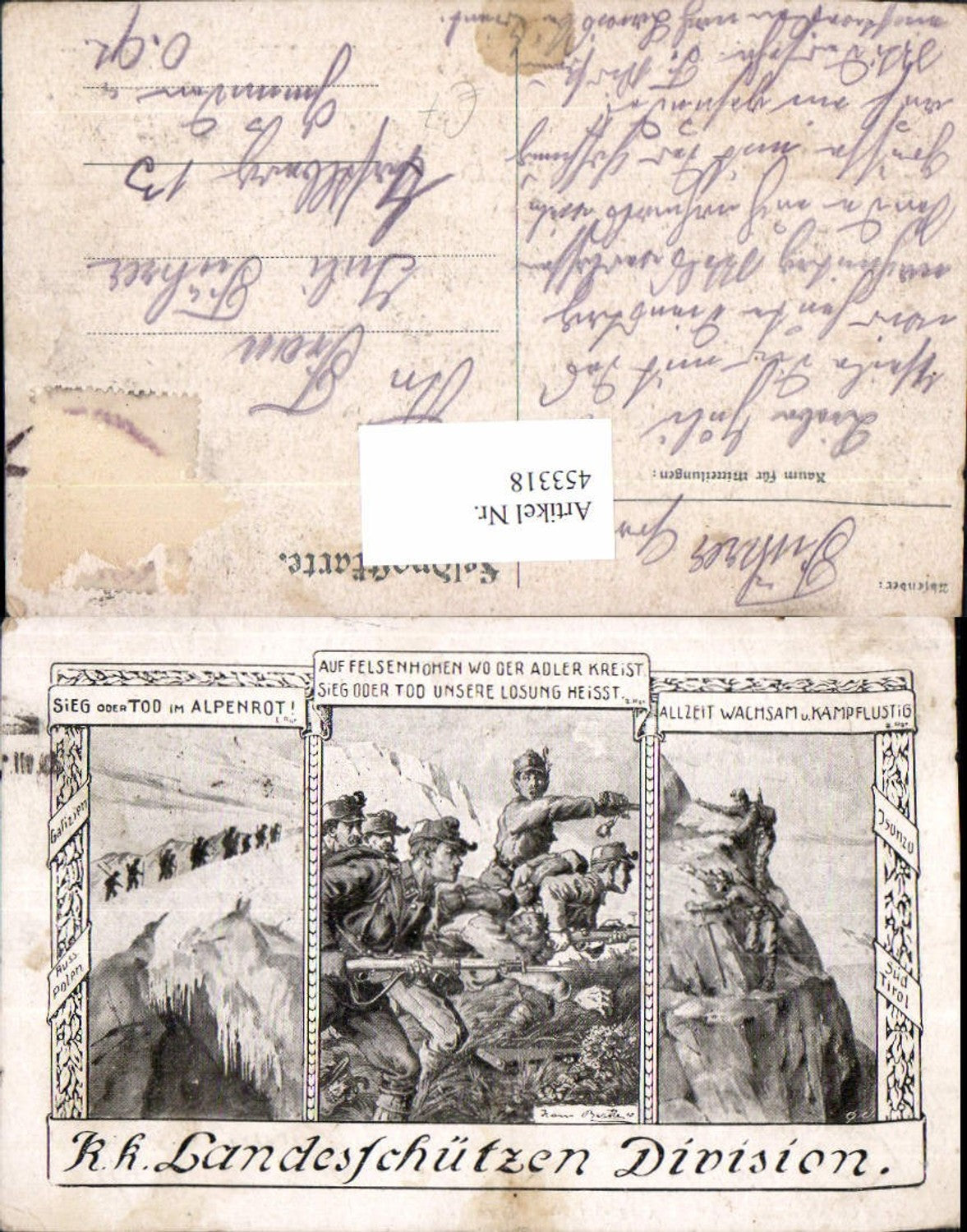 453318,Künstler Ak WW1 Hans Bertl Kk Landesschützen Division Patriotik Propaganda