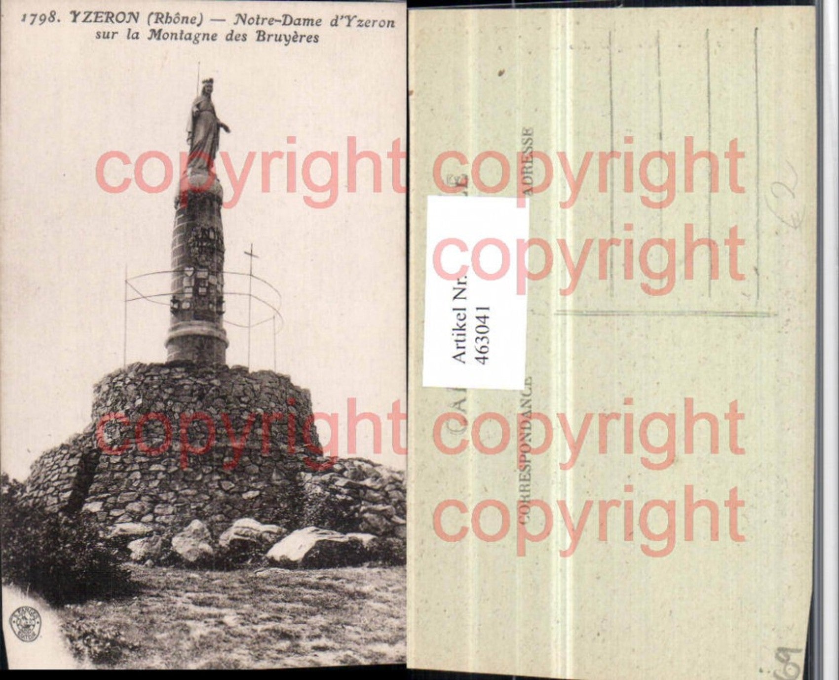 463041,Rhone-Alpes Rhone Yzeron Notre-Dame sur la Montagne Bruyeres Statue