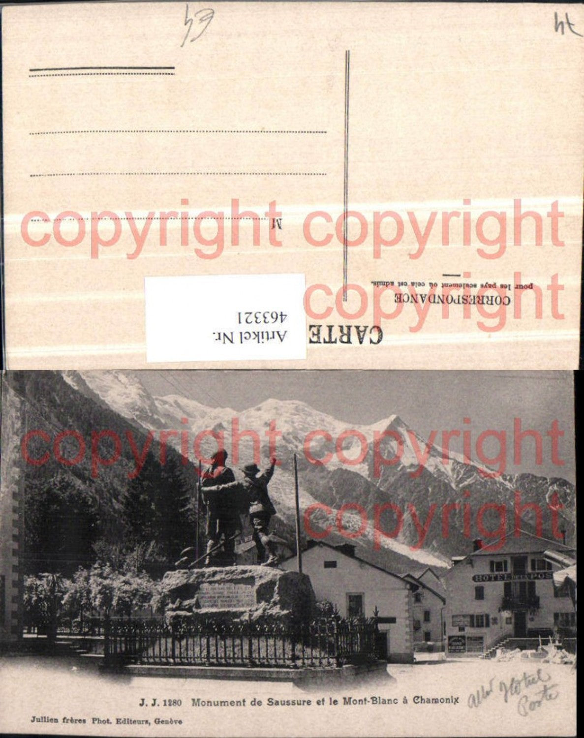 463321,Rhone-Alpes Haute-Savoie Chamonix Monument Saussure et Mont-Blanc Bergkulisse