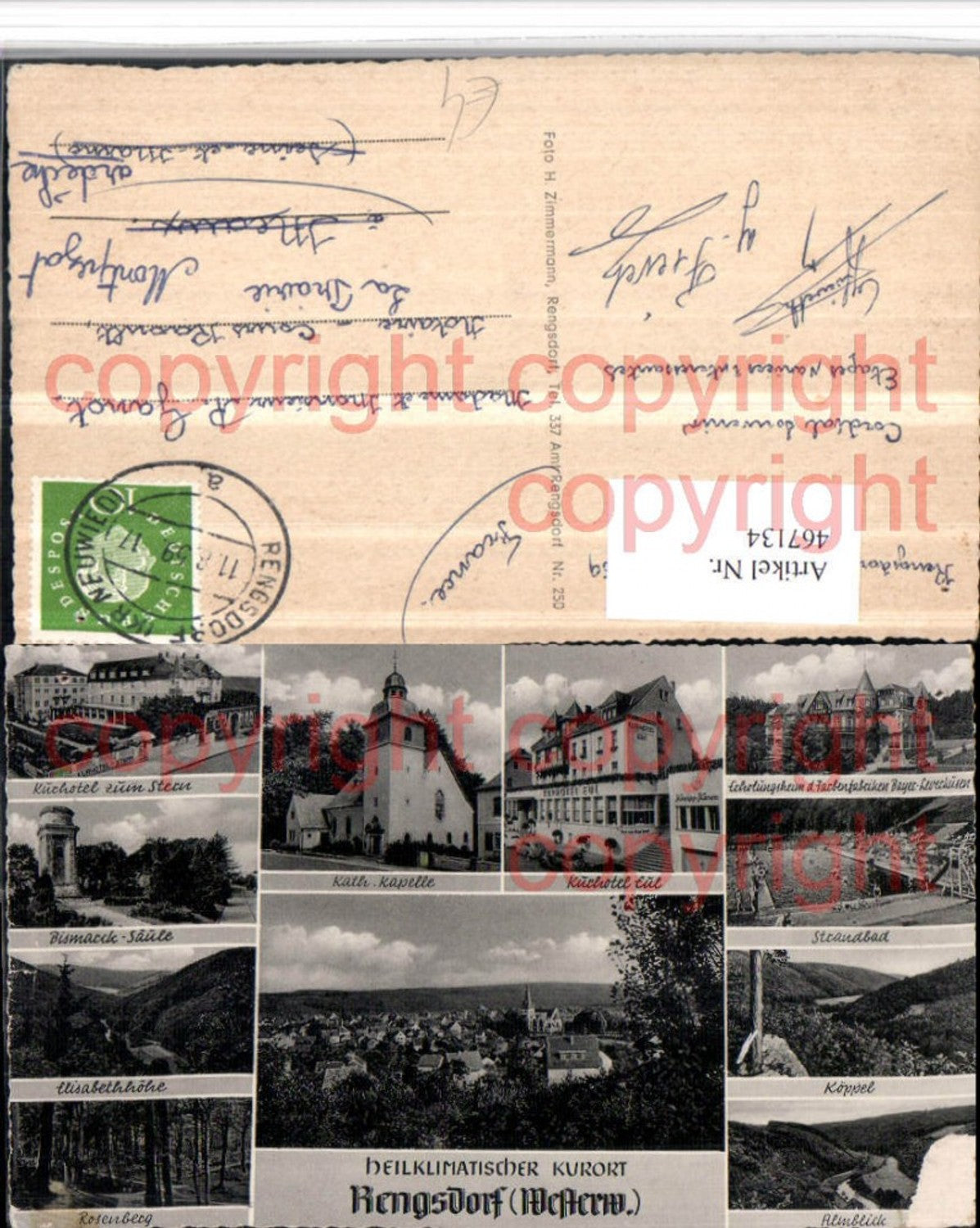 467134,Rengsdorf Totale Kapelle Hotel Freibad Bismarck-Säule Mehrbildkarte