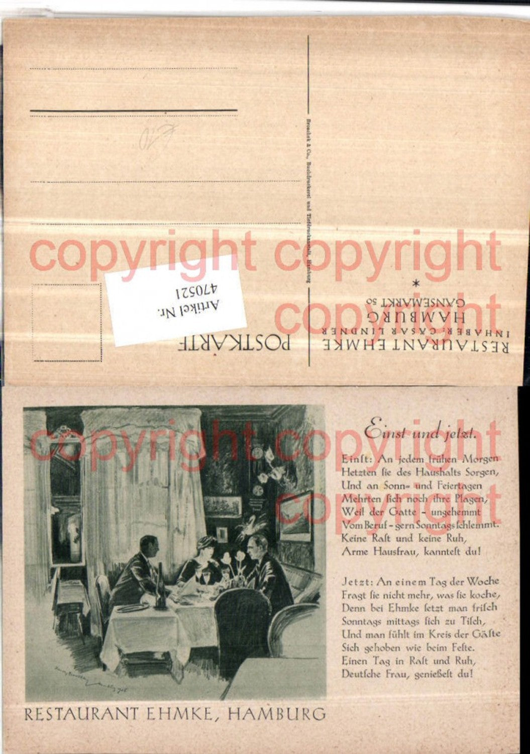 470521,Künstler AK Hamburg Restaurant Ehmke Text Einst und jetzt