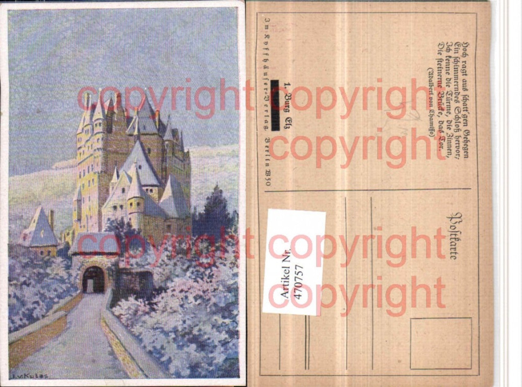 470757,Künstler AK J.v. Kulas Münstermaifeld Burg Elz Eltz