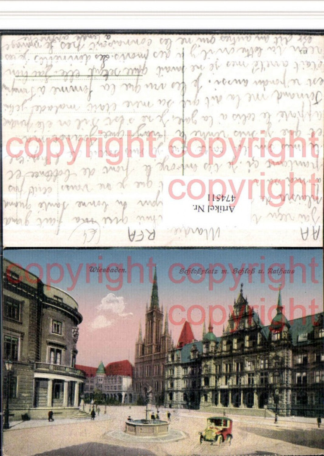 474511,Wiesbaden Schlossplatz m. Schloss u. Rathaus Brunnen