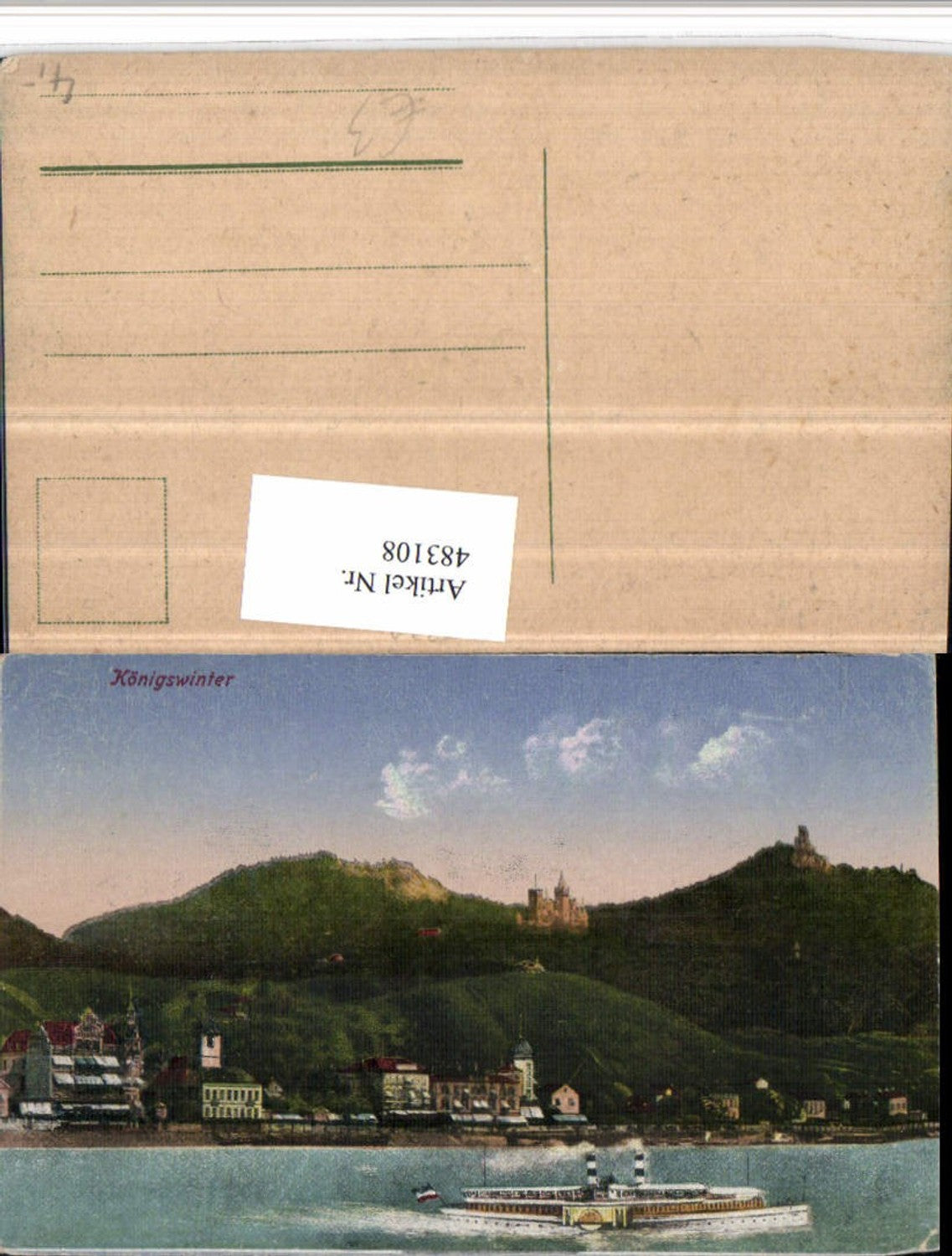483108,Königswinter am Rhein Teilansicht m. Burg Dampfer