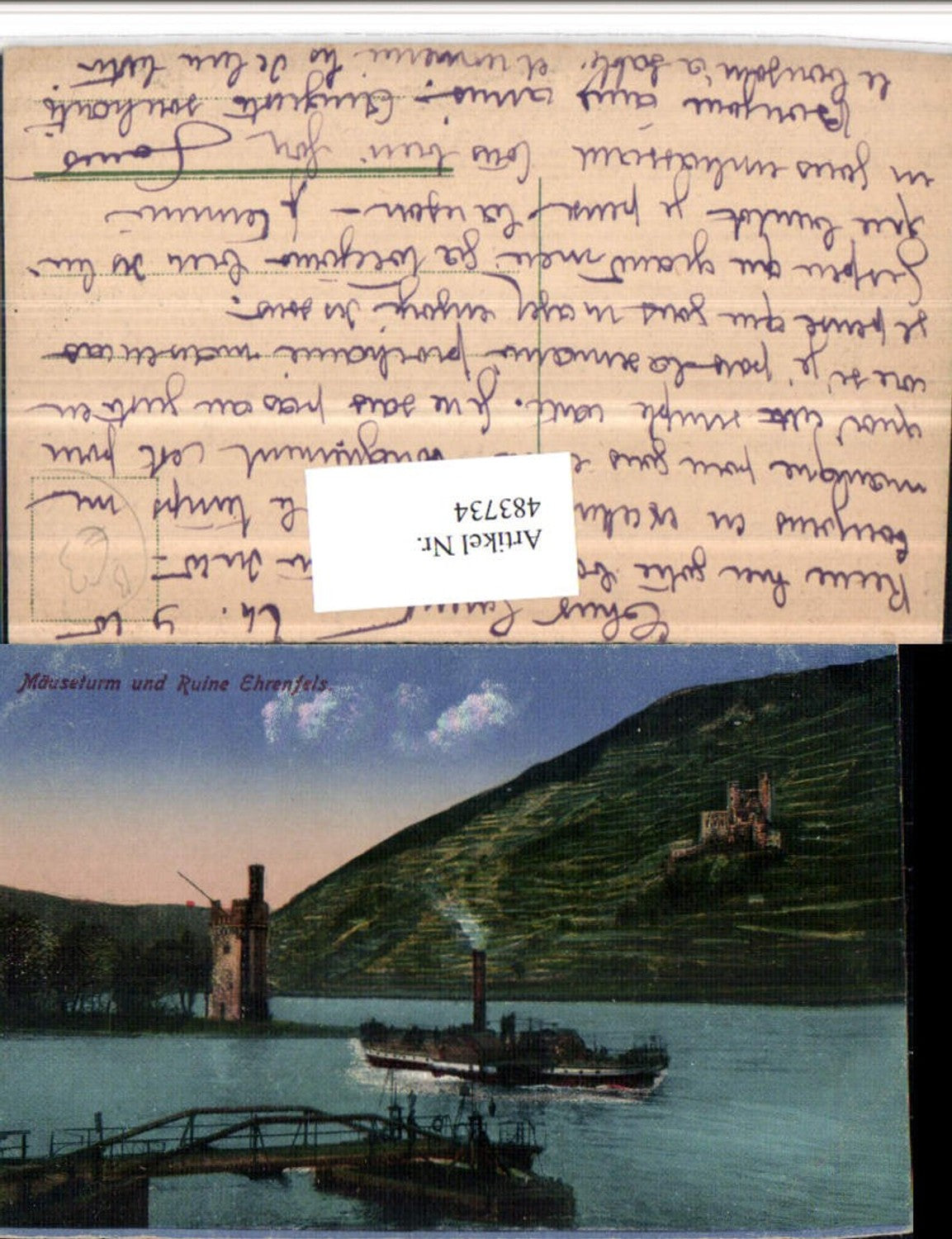 483734,Mäuseturm Turm b. Bingen am Rhein m. Ruine Ehrenfels Dampfer