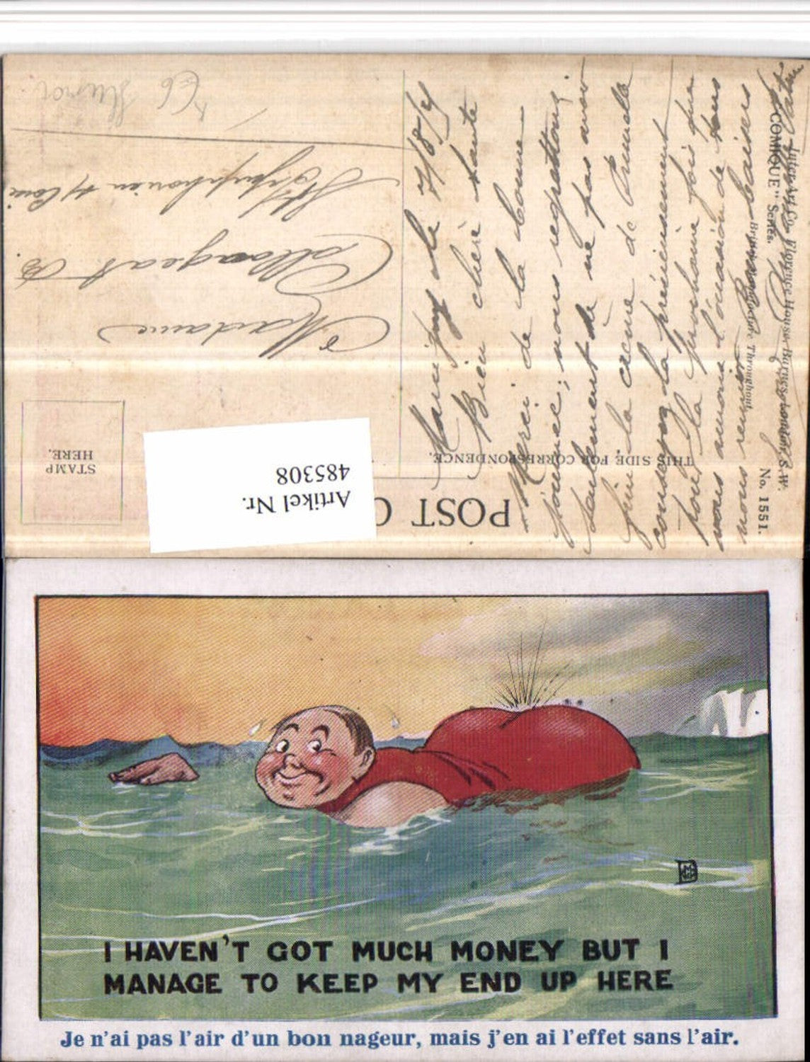 485308,Künstler AK Humor Völlerei Mann Meer Spruch