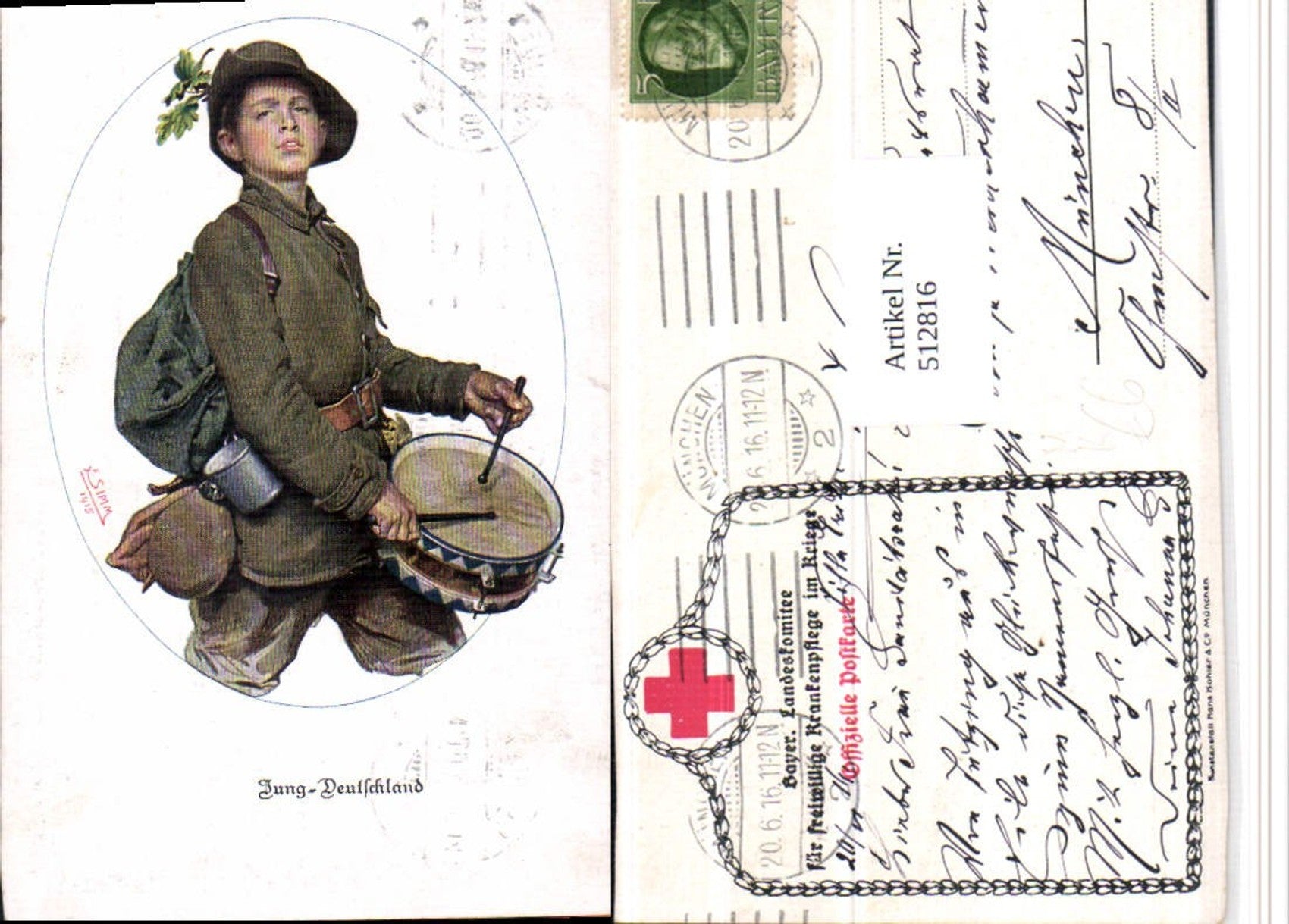 512816,Künstler AK Simm WW1 Jung-Deutschland Trommel pub Rotes Kreuz