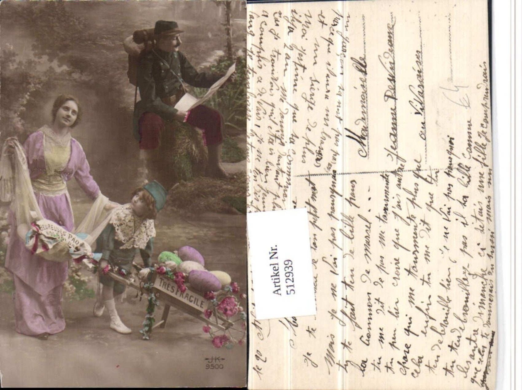 512939,WW1 Ostern Soldatenleben Soldat Karte Frau Kind Eier