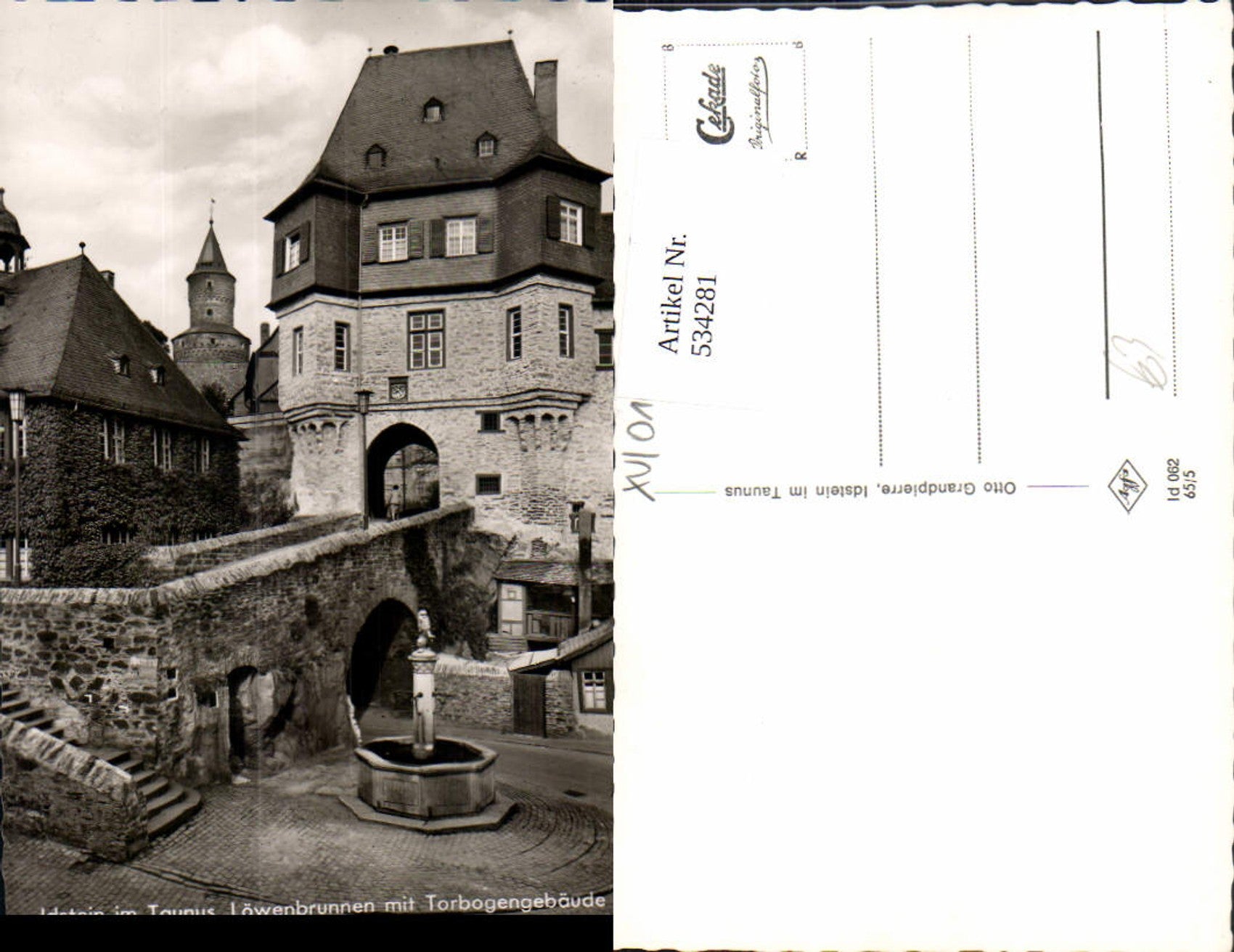 534281,Foto Ak Idstein i. Taunus Löwenbrunne m. Torbogengebäude Brunnen