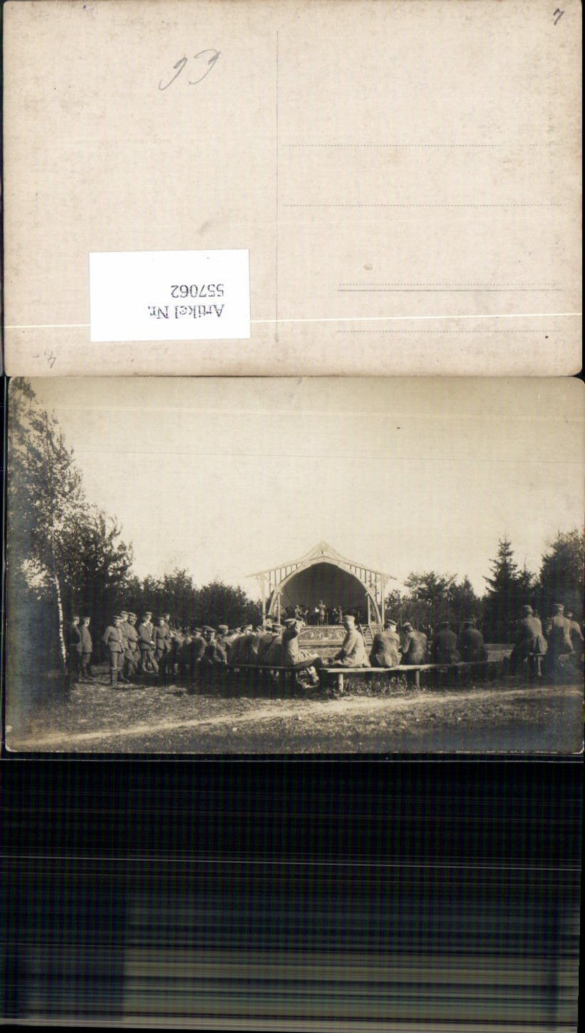 557062,Foto-AK Deutsche Armee Feldmesse Feldmusik Musik Soldaten Bühne