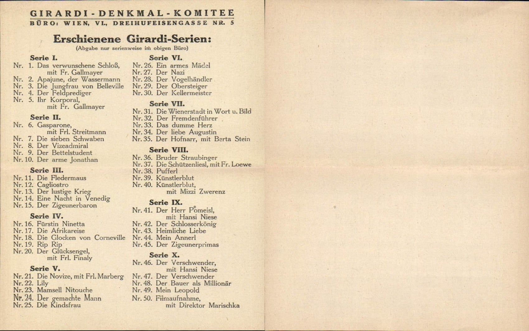 566750,Alexander Girardi Denkmal Komitee Serie Preisliste Ansichtskarten