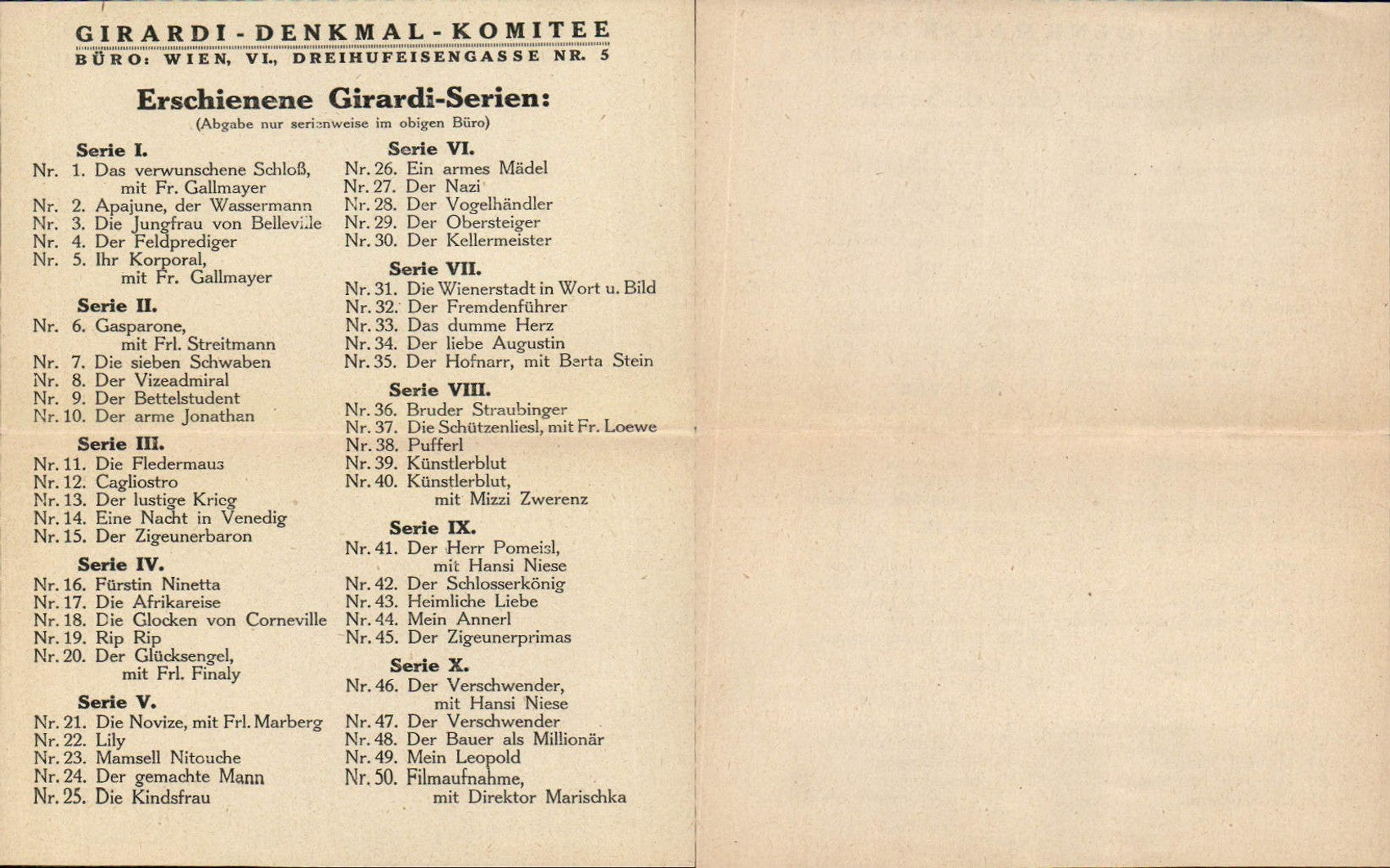 566752,Alexander Girardi Denkmal Komitee Serie Preisliste Ansichtskarten