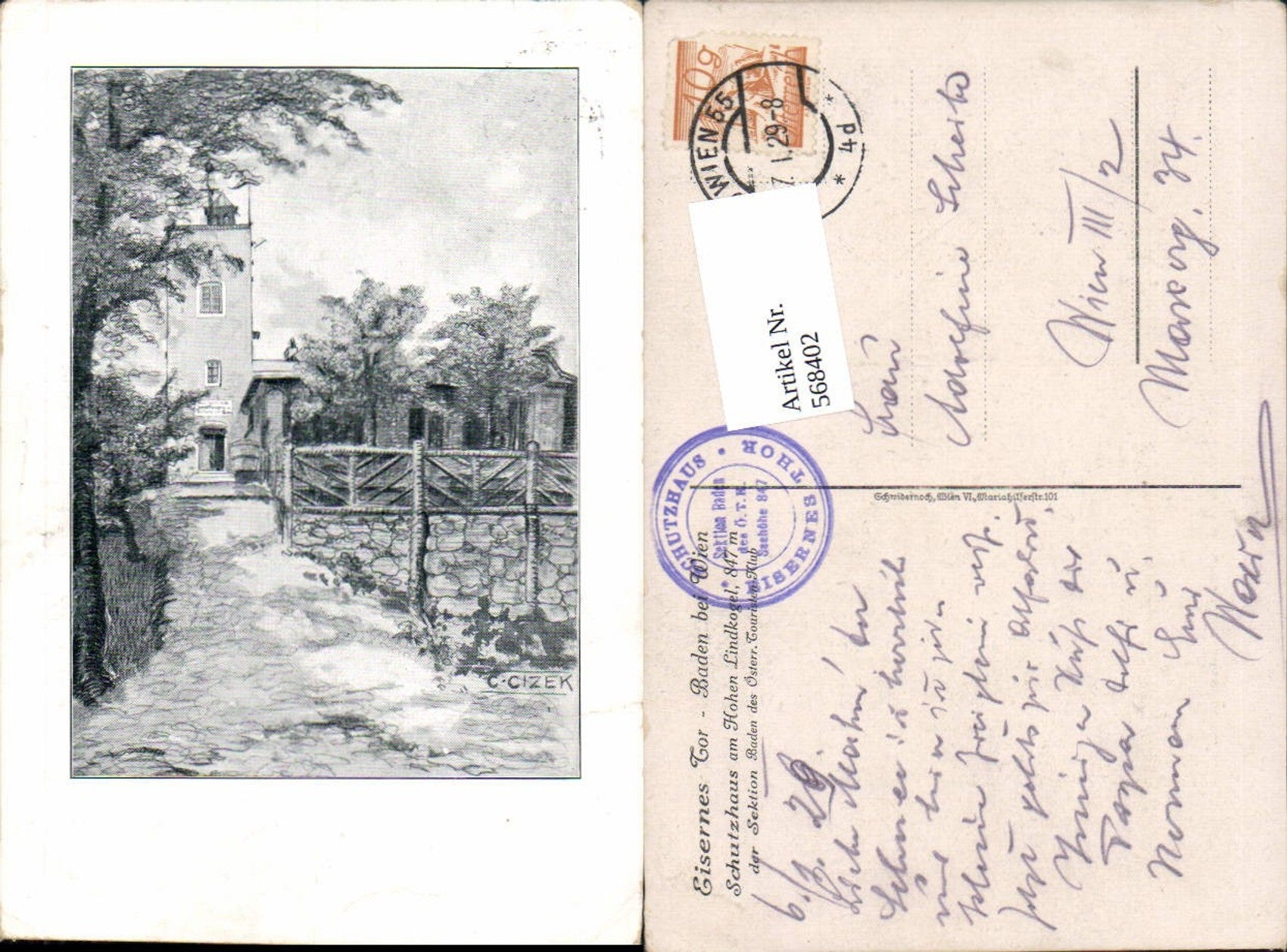 568402,Künstler AK C. Cizek Baden bei Wien Lindkogel Schutzhaus Eisernes Tor