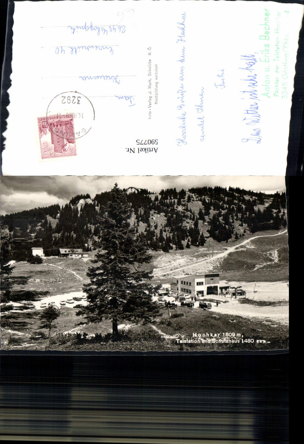 590775,Foto Ak Göstling an der Ybbs Hochkar Talstation u. Schutzhaus Bus VW Bus Bully