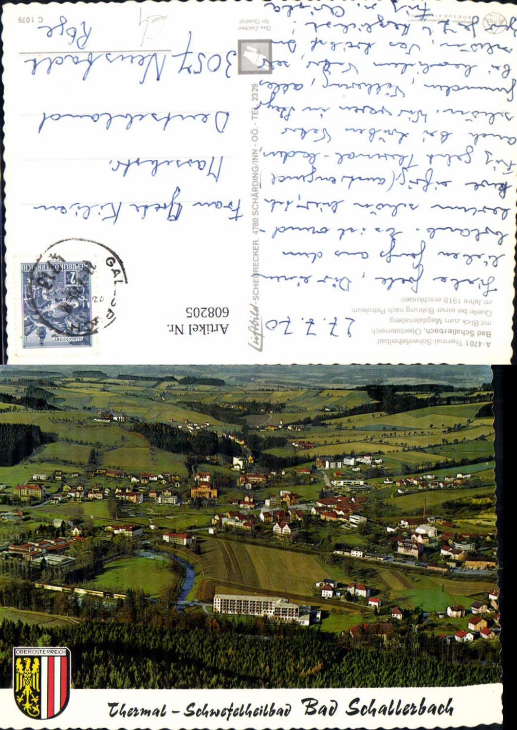 608205,tolle Fliegeraufnahme Bad Schallerbach Totale Luftbild