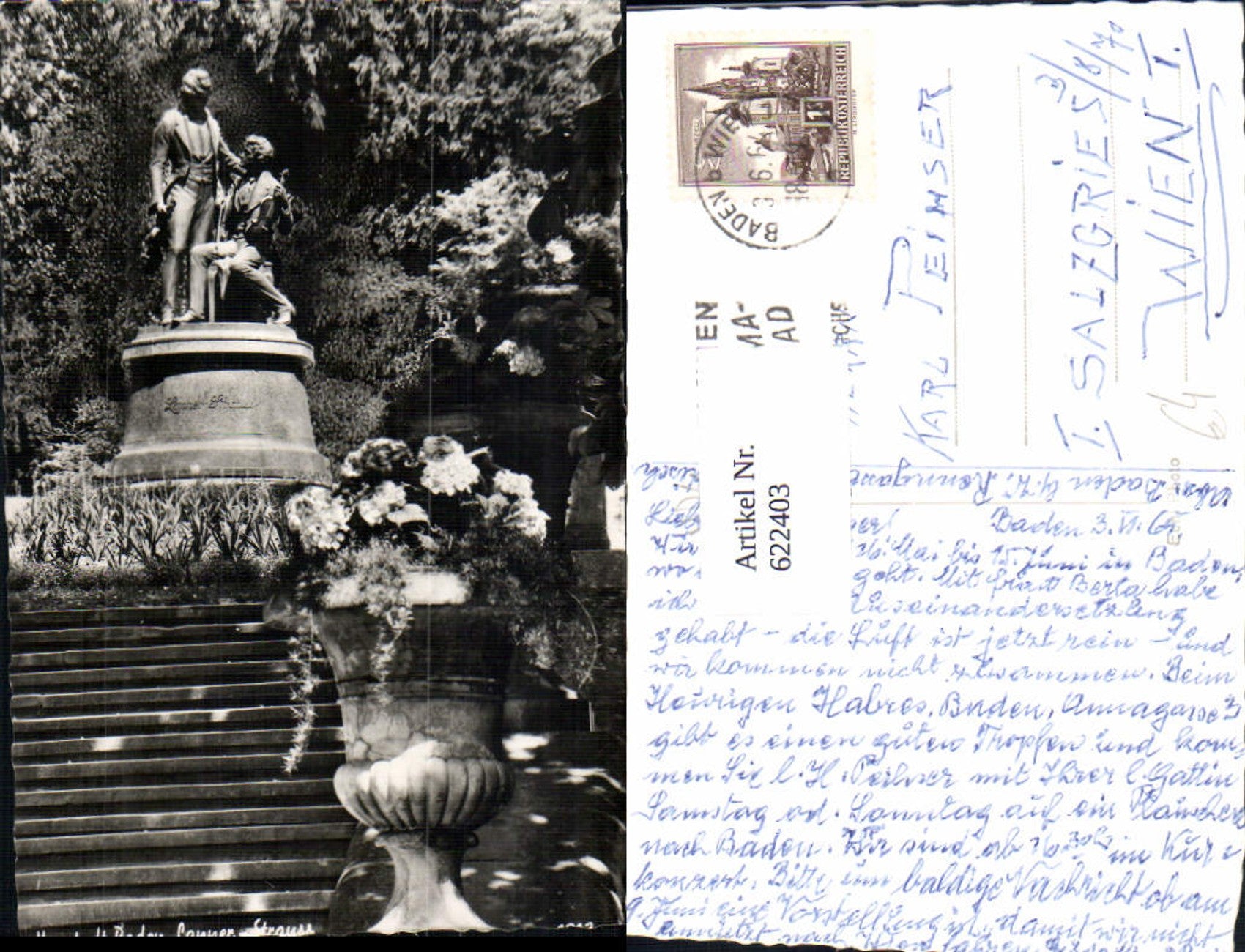 622403,Foto Ak Baden Lanner und Strauss Denkmal