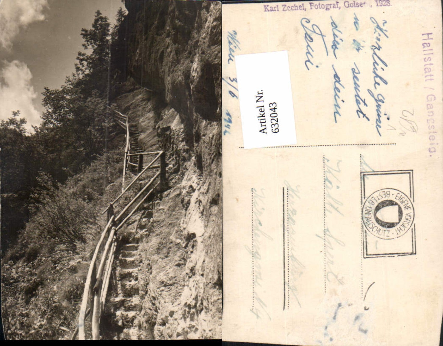 632043,tolle Foto-AK Hallstatt Gangsteig 1928 pub Karl Zechel Fotograf Goisern