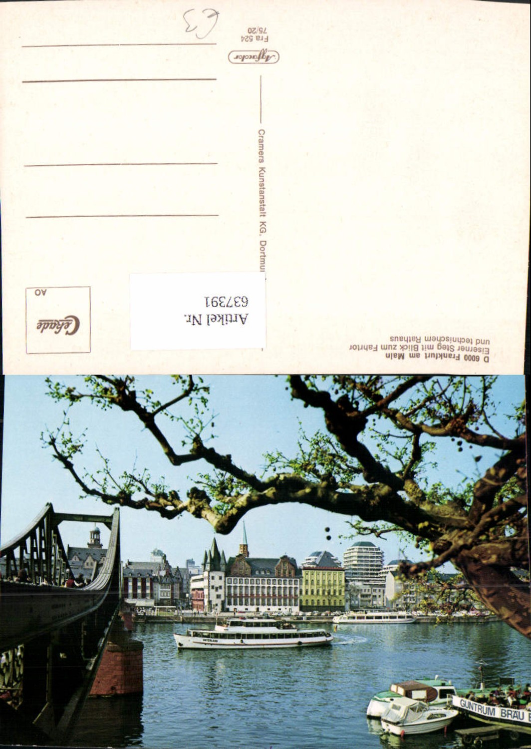 637391,Frankfurt a. Main Eiserner Steg m. Blick zum Fahrtor Schiff