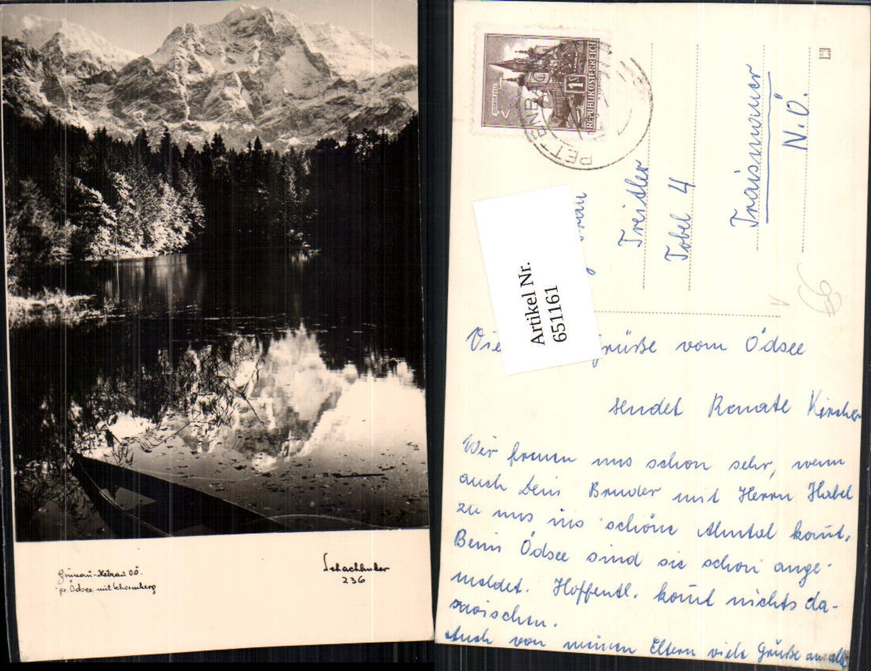 651161,Foto Ak Grünau Hetzau Gr. Ödsee m. Schermberg pub Schachhuber 236