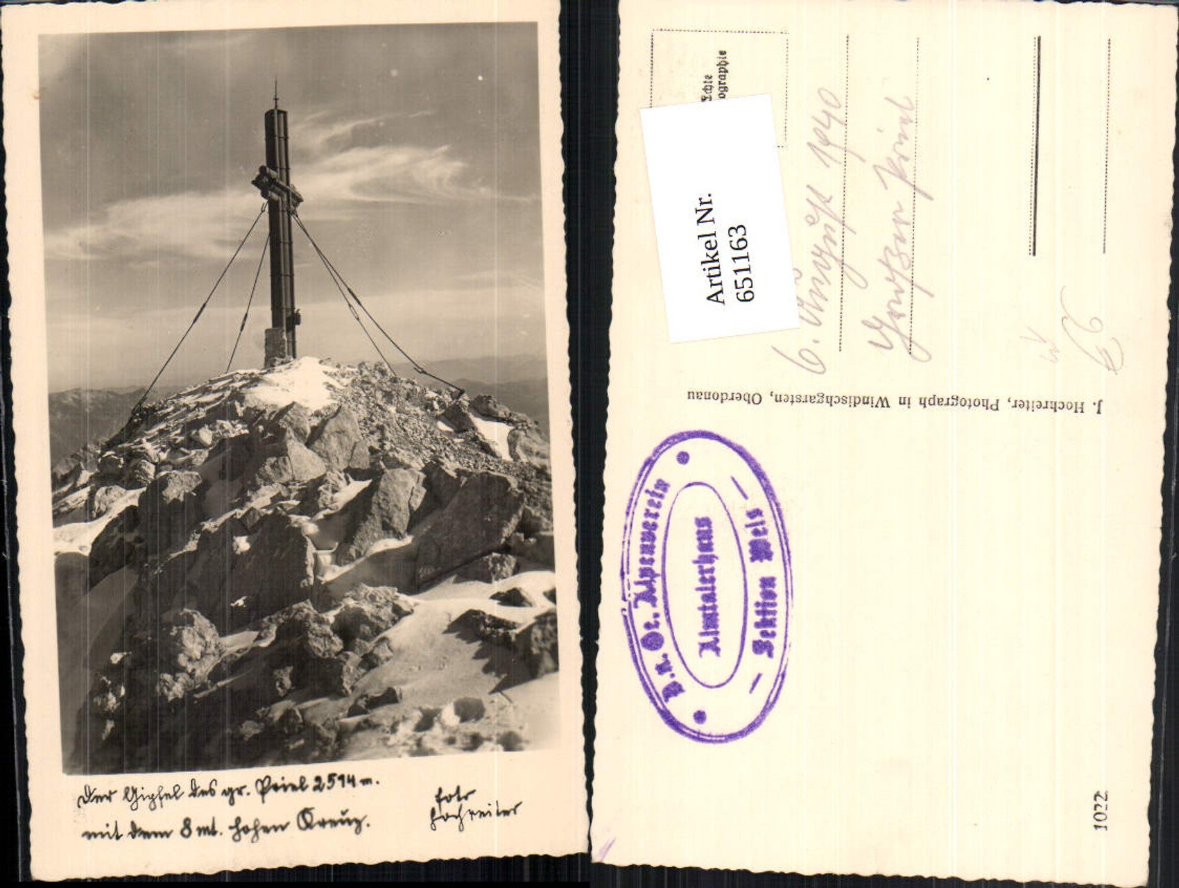 651163,Foto Ak Grünau im Almtal Gipfel Gr. Priel Gipfelkreuz pub Hochreiter 1022