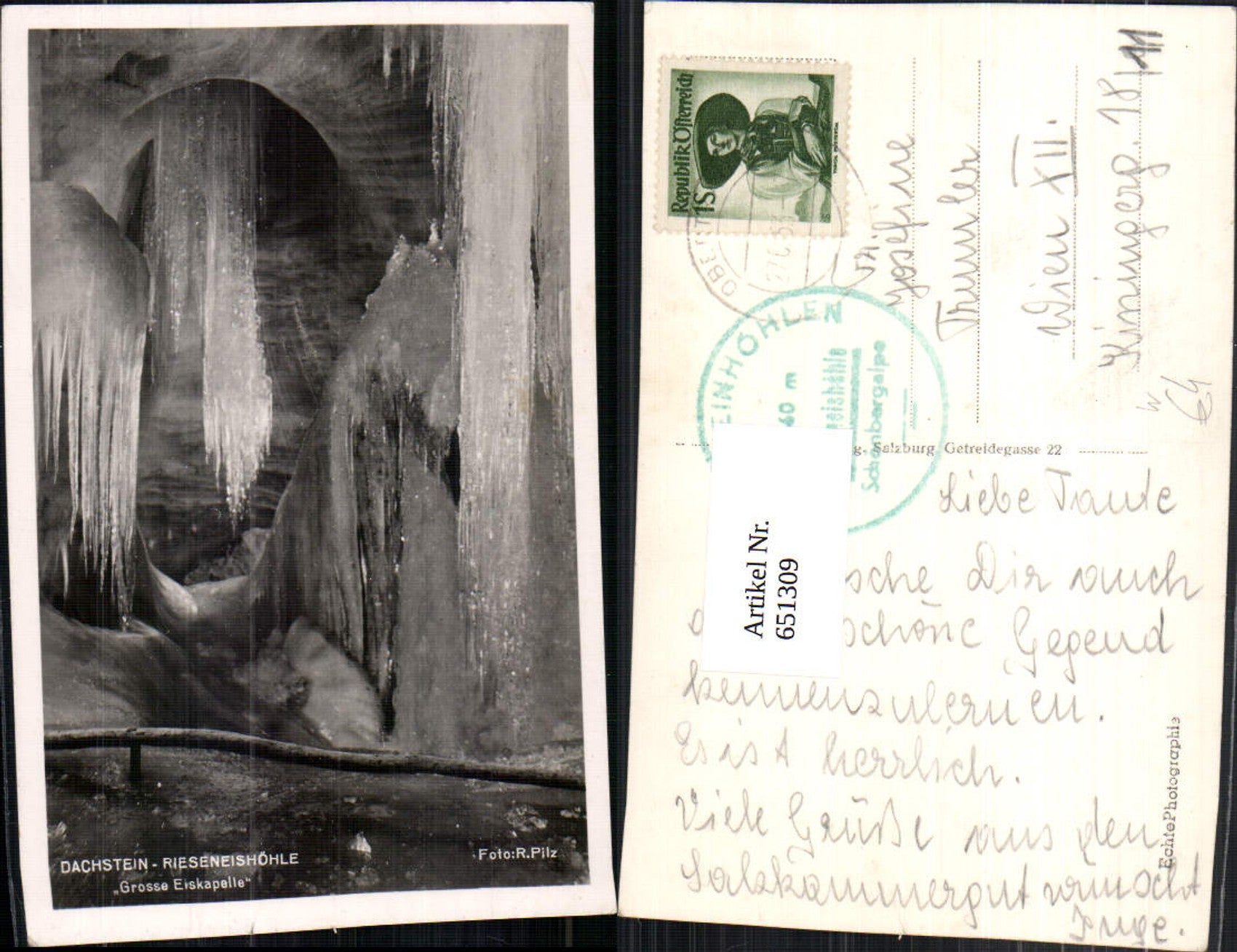 651309,Foto Ak Dachstein Rieseneishöhle Grosse Eiskapelle Obertraun