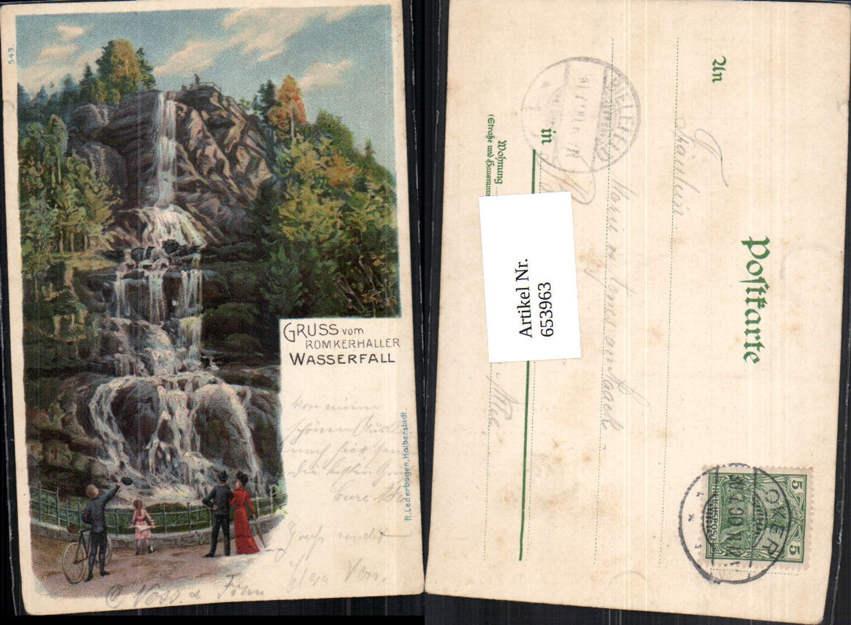653963,tolle Lithographie Wasserfall Romkerhaller Oker Goslar Harz Oberharz Schulenberg