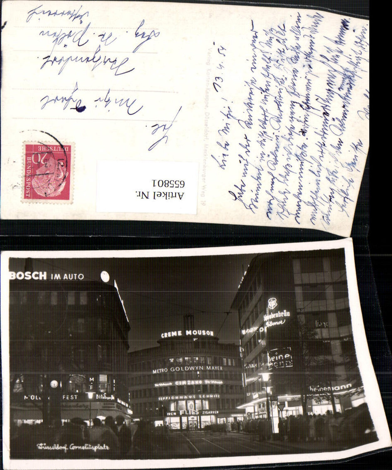 655801,Foto Ak Düsseldorf Corneliusplatz b. Nacht Reklame Bosch Heinemann