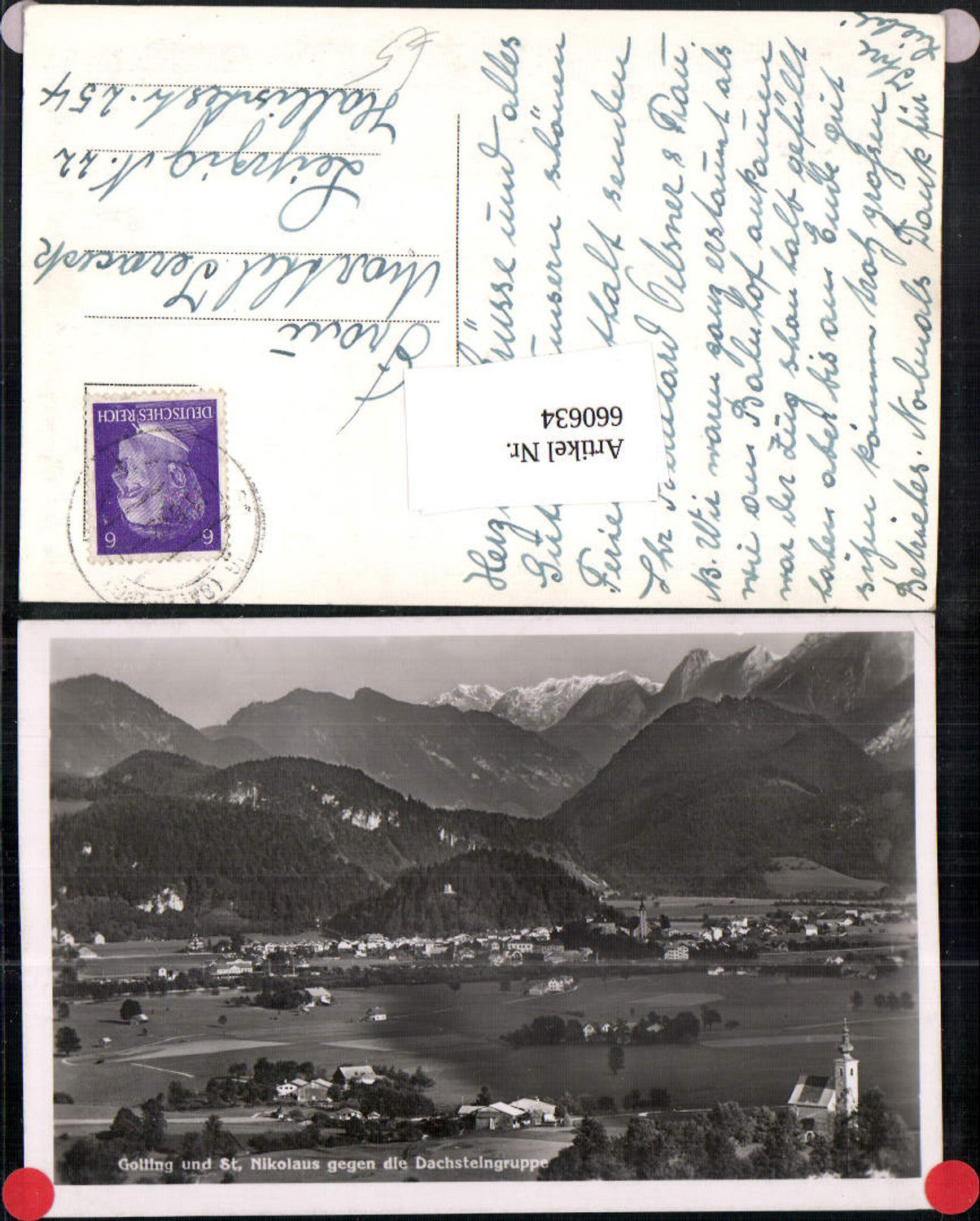 660634,Foto Ak Golling an der Salzach u. St Nikolaus geg. d. Dachsteingruppe