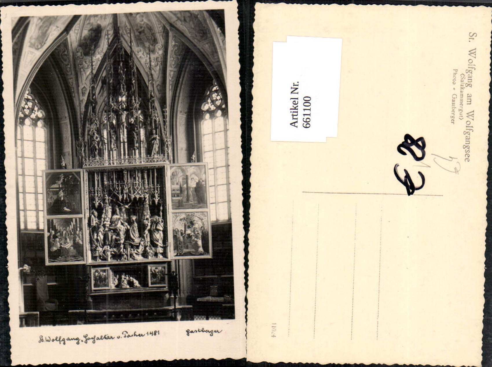 661100,Foto Ak St. Wolfgang im Salzkammergut Hochaltar v. Pacher pub Gastberger