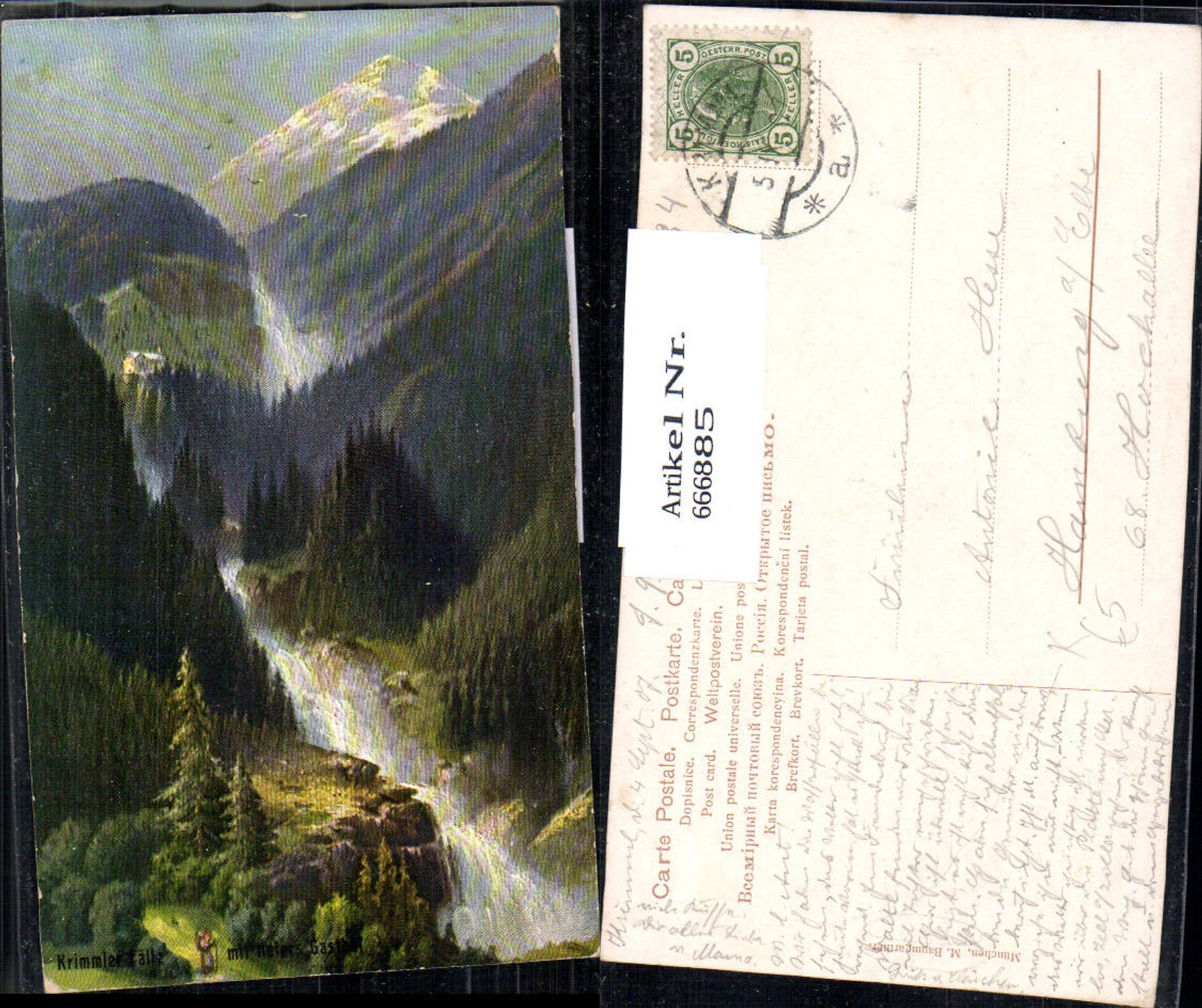 666885,Künstler Ak M. Baumgartner Krimml Krimmler Wasserfälle