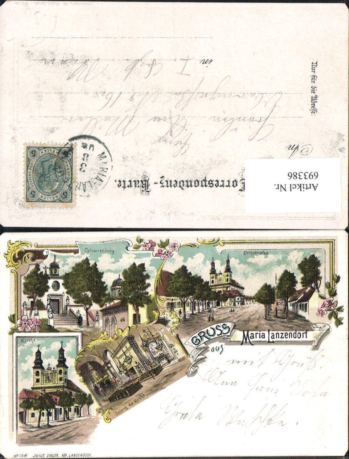 693386 tolle Lithographie Gruss aus Maria Lanzendorf 1899