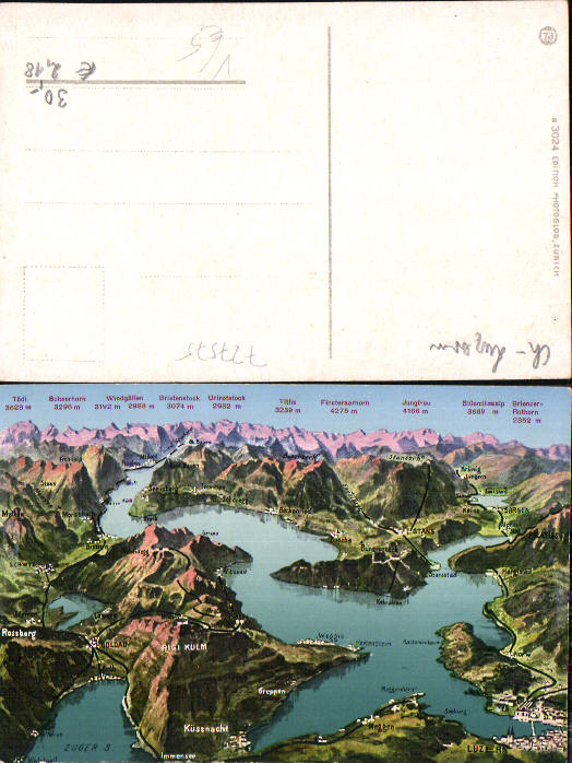 727575 Landkarten AK Vogelschau Zugersee Zug Weggis Luzern Vierwaldstättersee