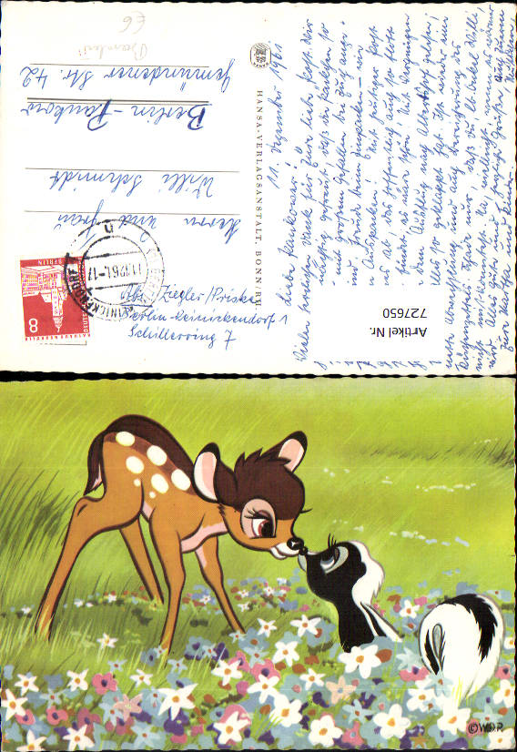 727650 Künstler AK Walt Disney Bambi und Stinktier Blume Zeichentrick Film Tiere