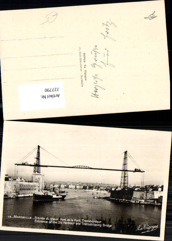727790 Marseille Entree du Vieux Port et le Pont Transbordeur Brücke Hafen Schiff Dampfer Bauwerk