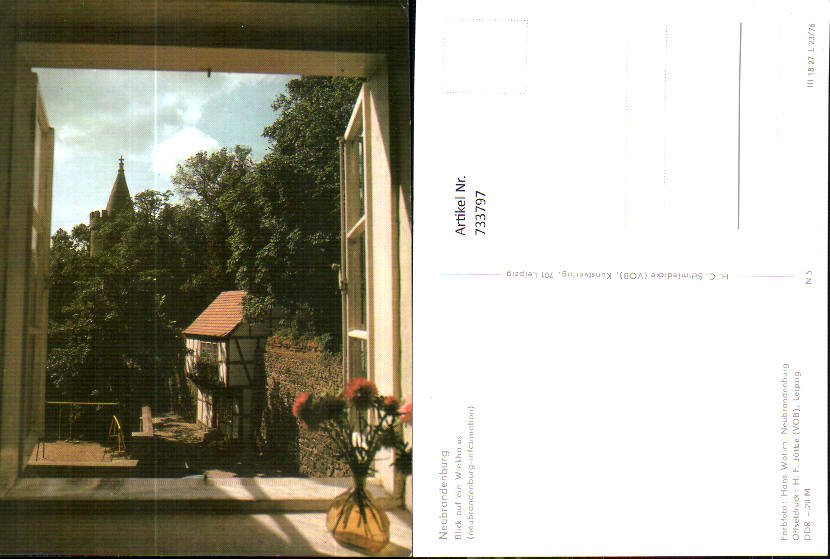 733797 Neubrandenburg Blick auf ein Wiekhaus Blick durch Fenster Vase Blumen