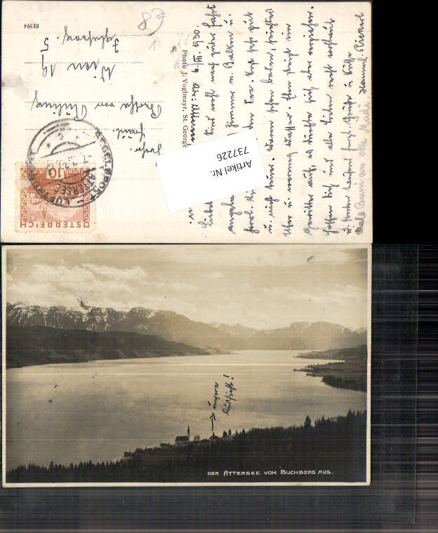 737226 seltene Fotokarte Attersee vom Buchberg aus pub Voglmayr J.