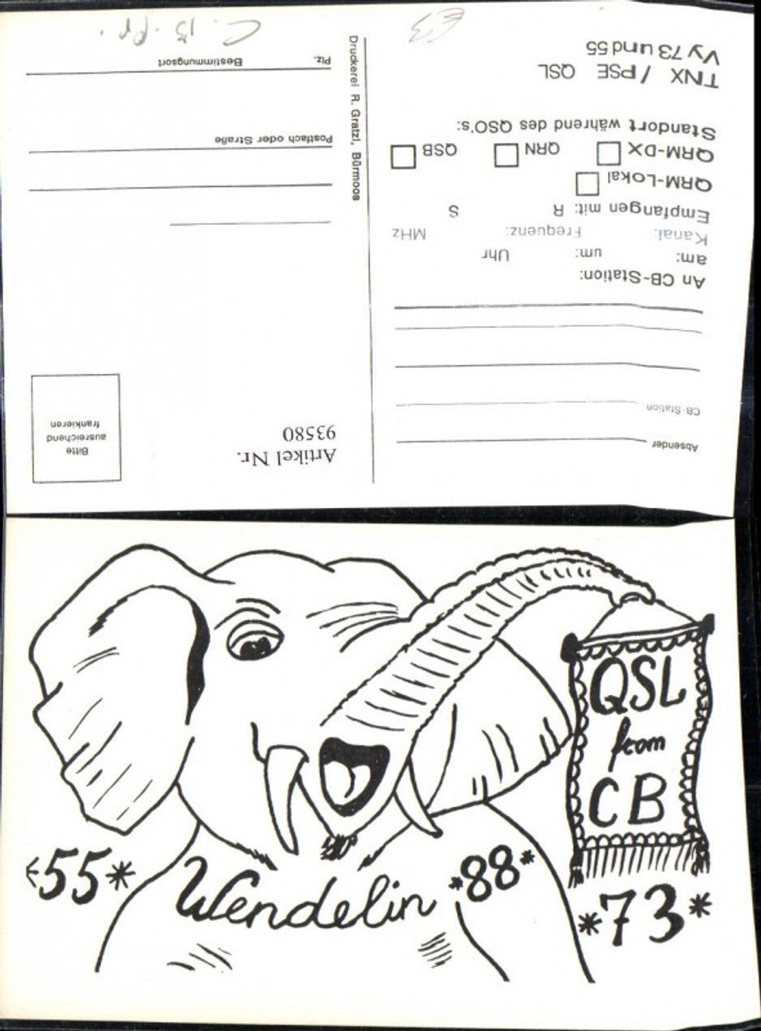 93580,QSL CB Karte Wendelin Elefant