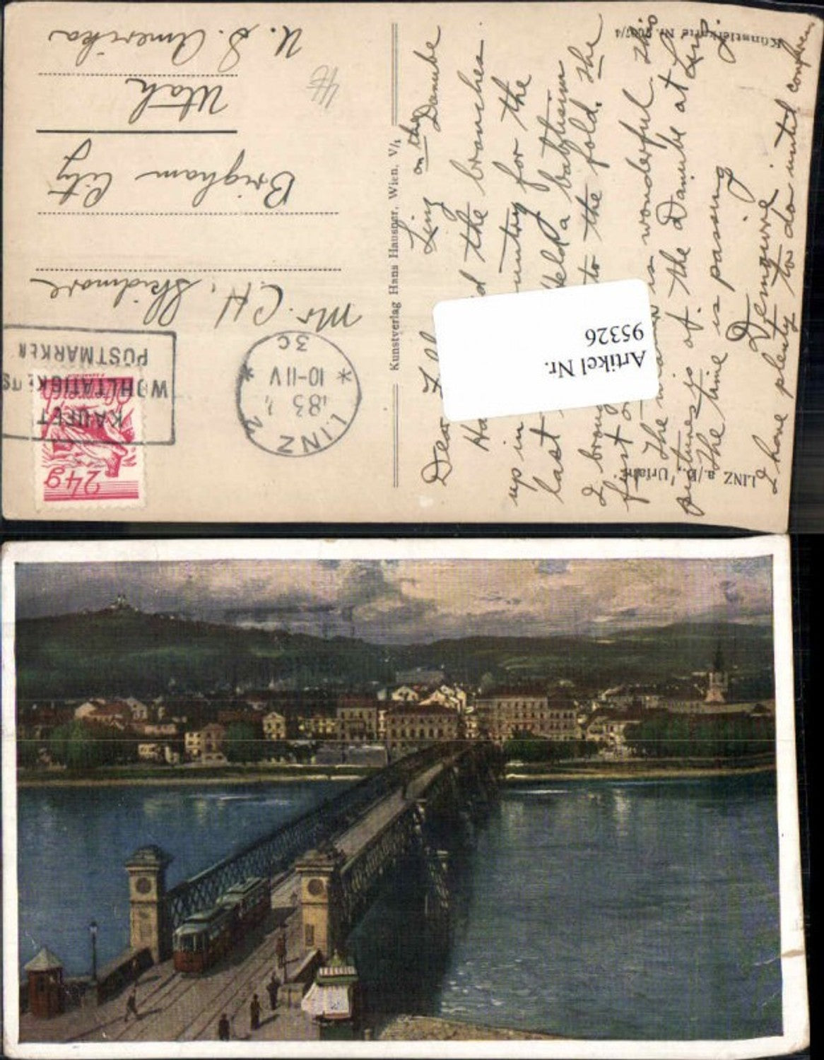95326,Linz Urfahr m. Brücke Strassenbahn Künstlerkarte