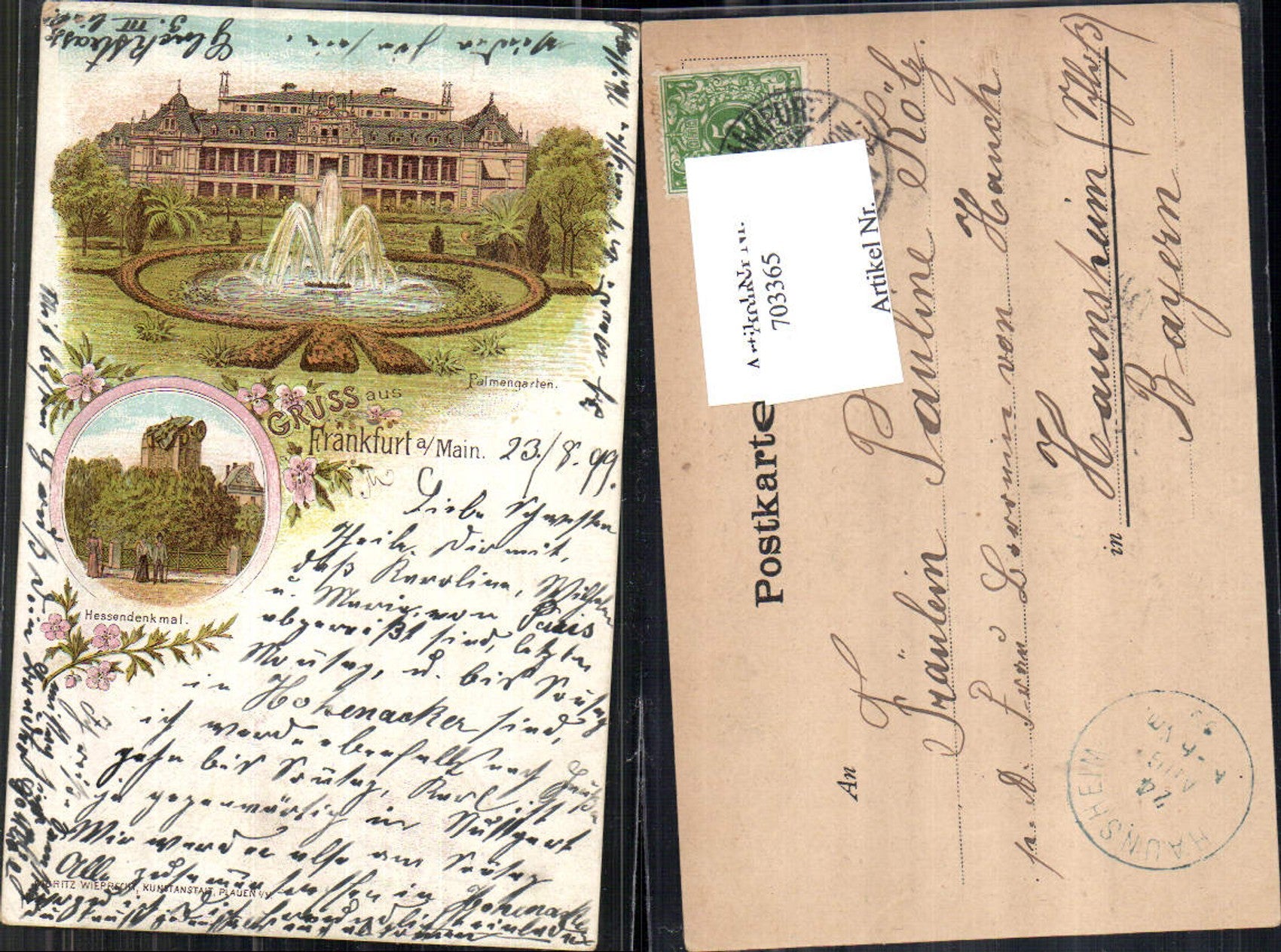 Lithographie Gruss aus Frankfurt am Main Palmengarten Stp. Haunsheim 1899